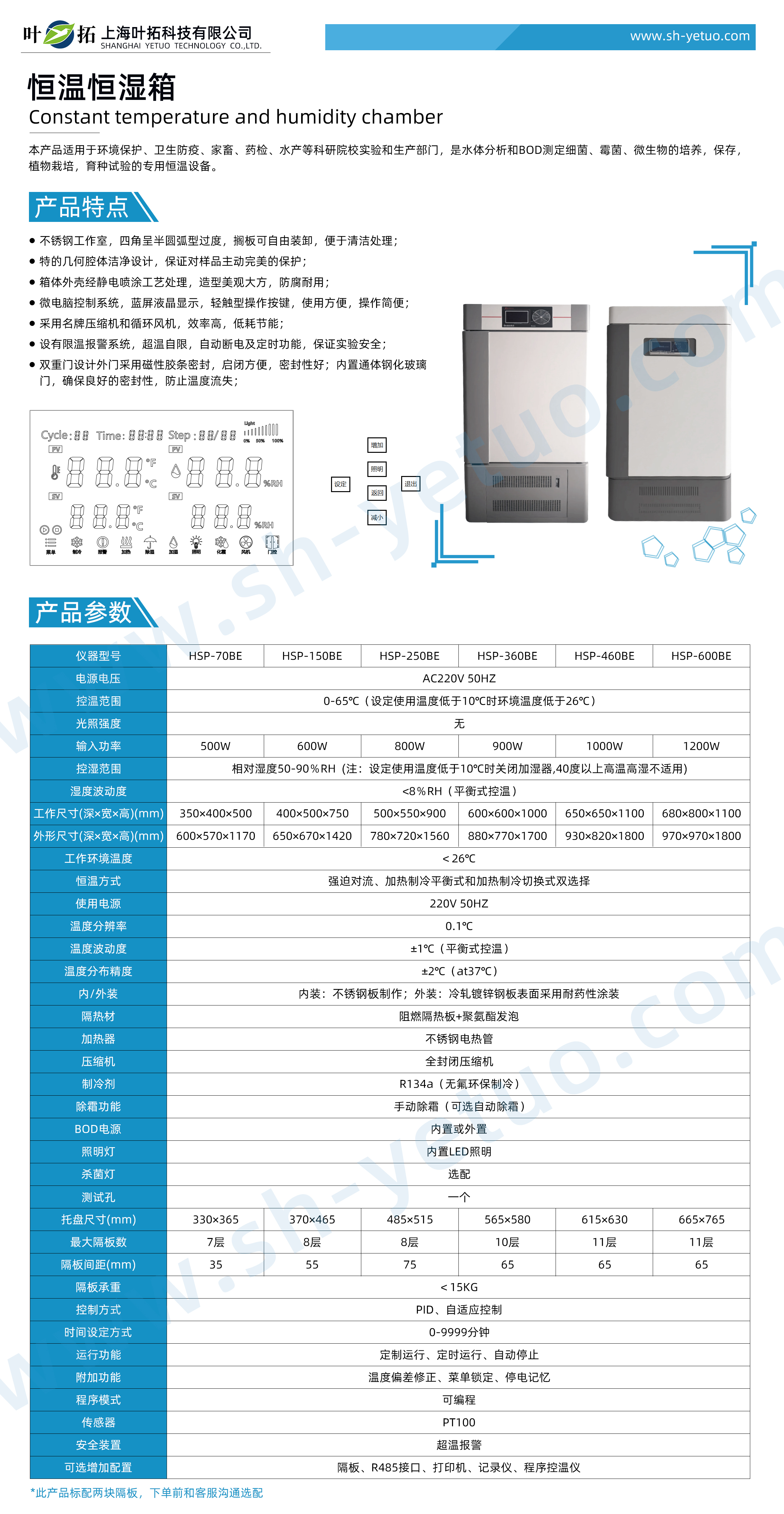 葉拓 HSP-600BE 恒溫恒濕箱詳細參數
