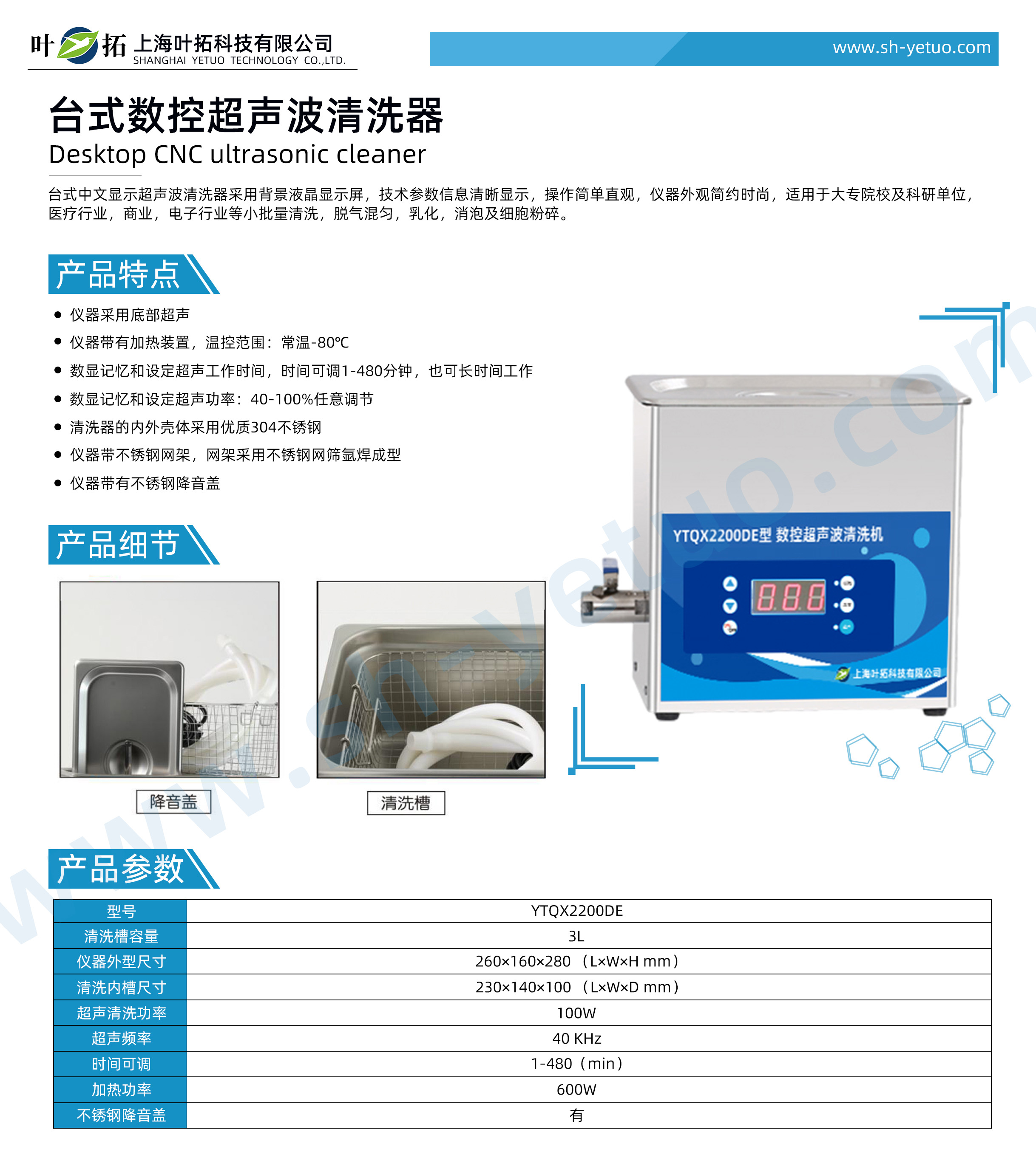 葉拓 YTQX2200DE 臺式數控超聲波清洗機詳細參數