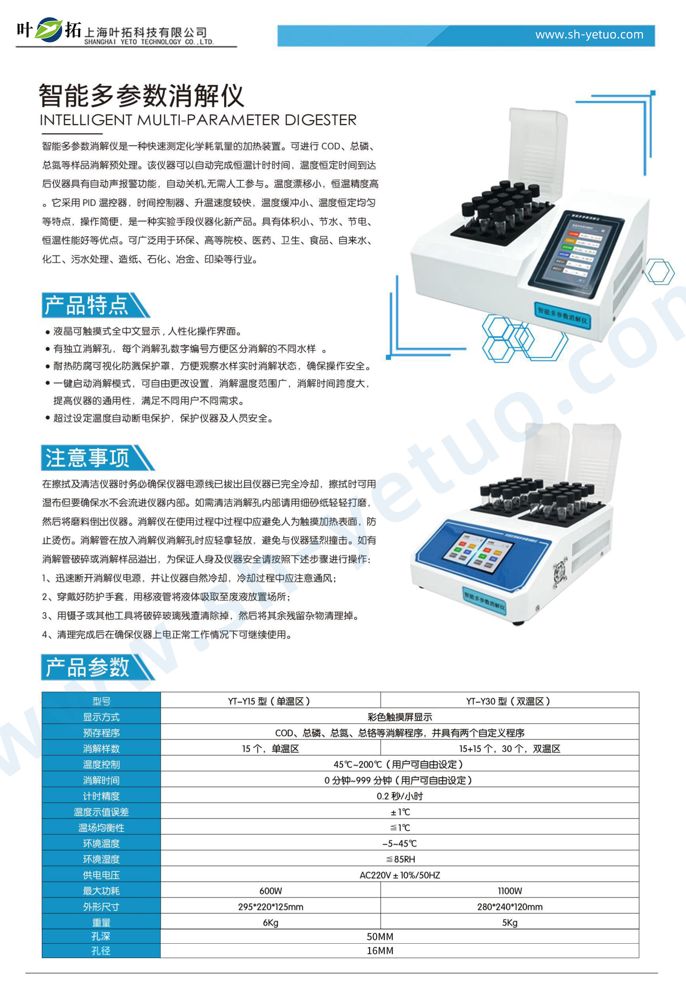 葉拓 YT-Y30 智能消解儀詳細參數