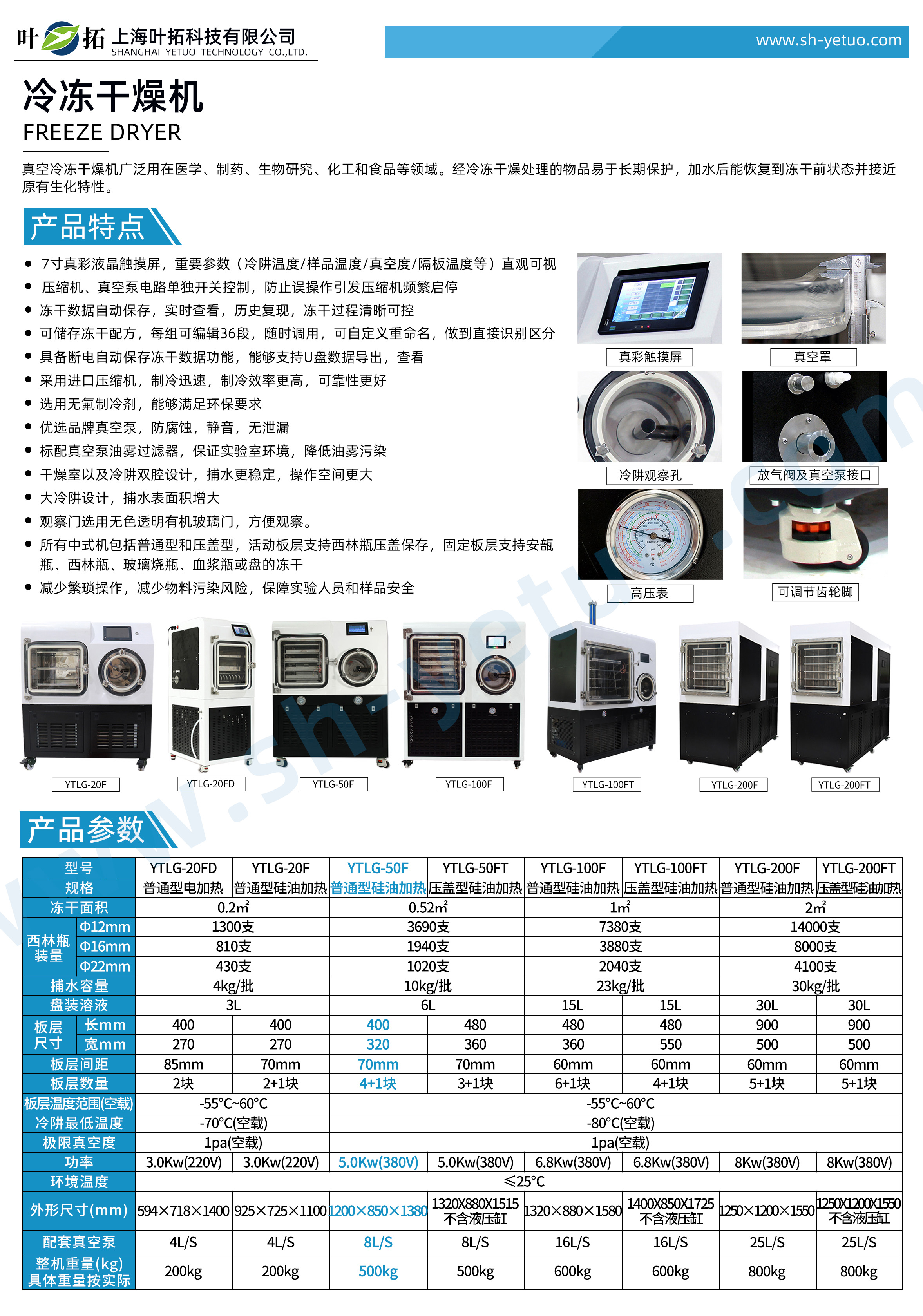 葉拓 YTLG-50F 原位方倉0.5平方冷凍干燥機詳細參數
