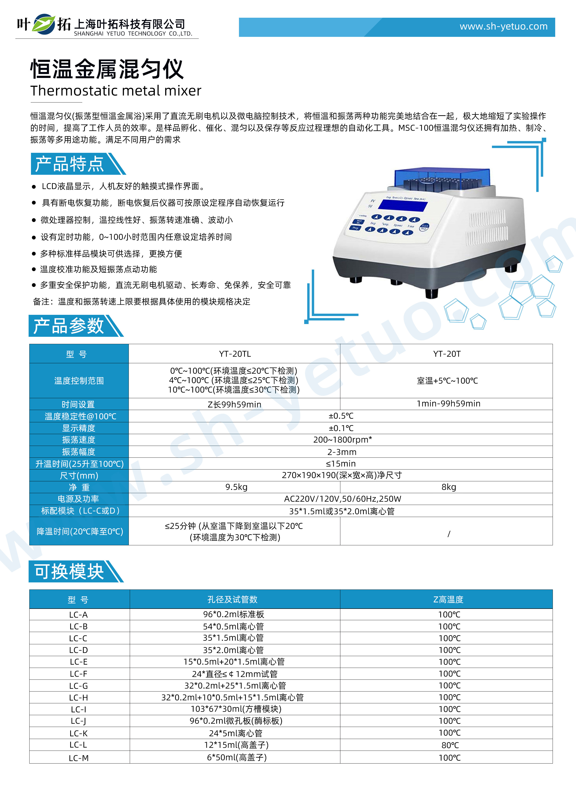 葉拓 YT-20TL 恒溫金屬混勻儀詳細參數