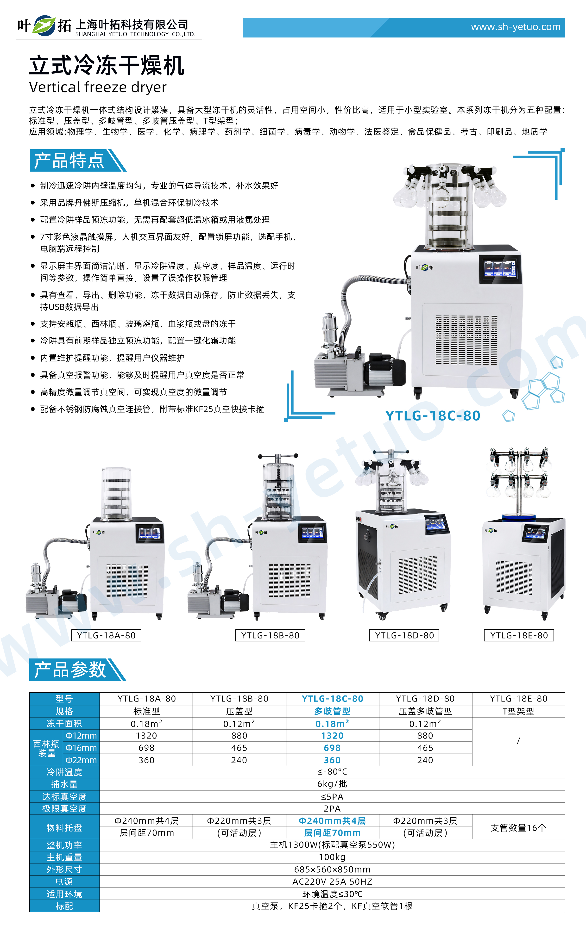 葉拓 YTLG-18C-80 冷凍干燥機詳細參數