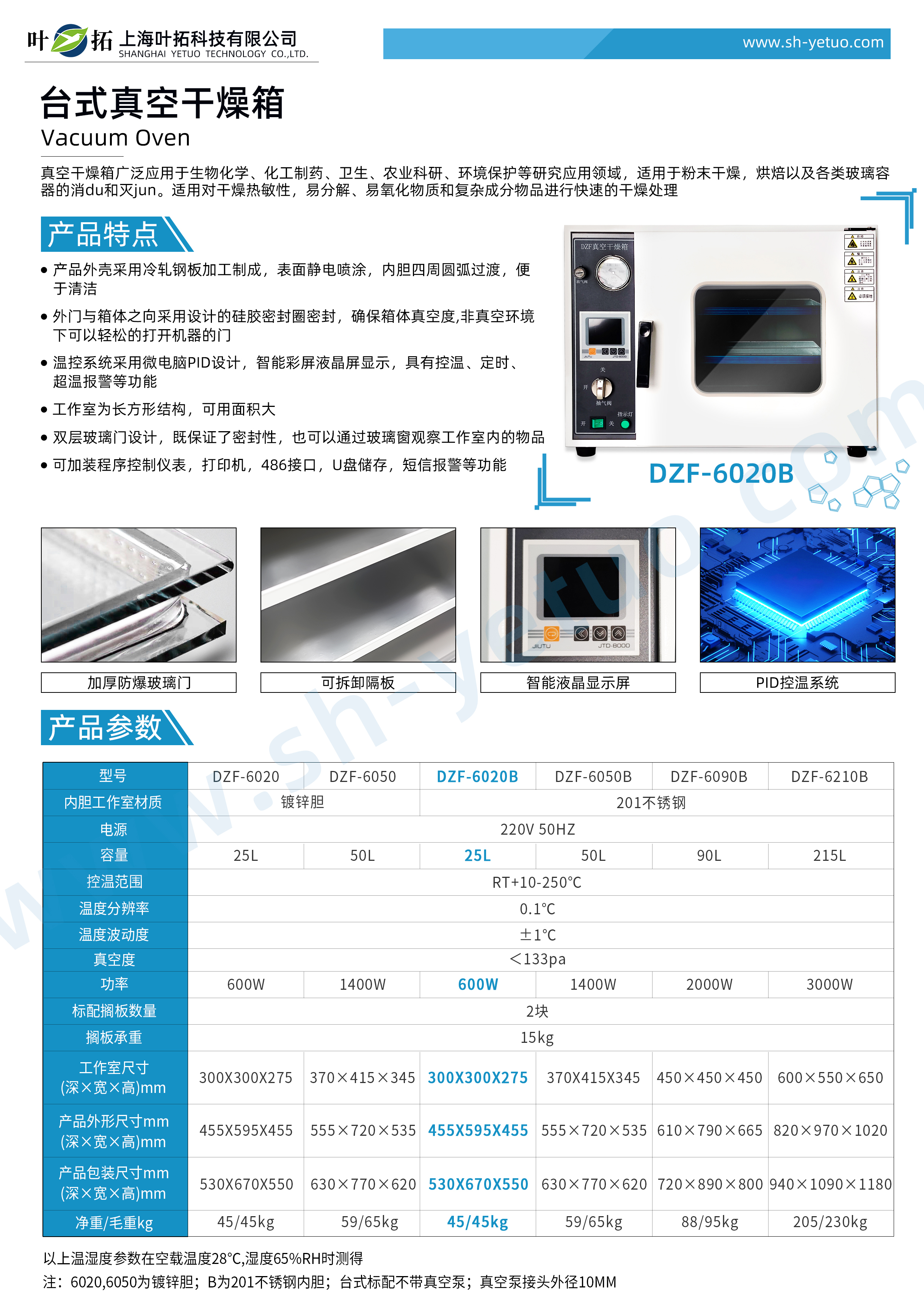 葉拓 DZF-6020B 臺式真空干燥箱詳細參數