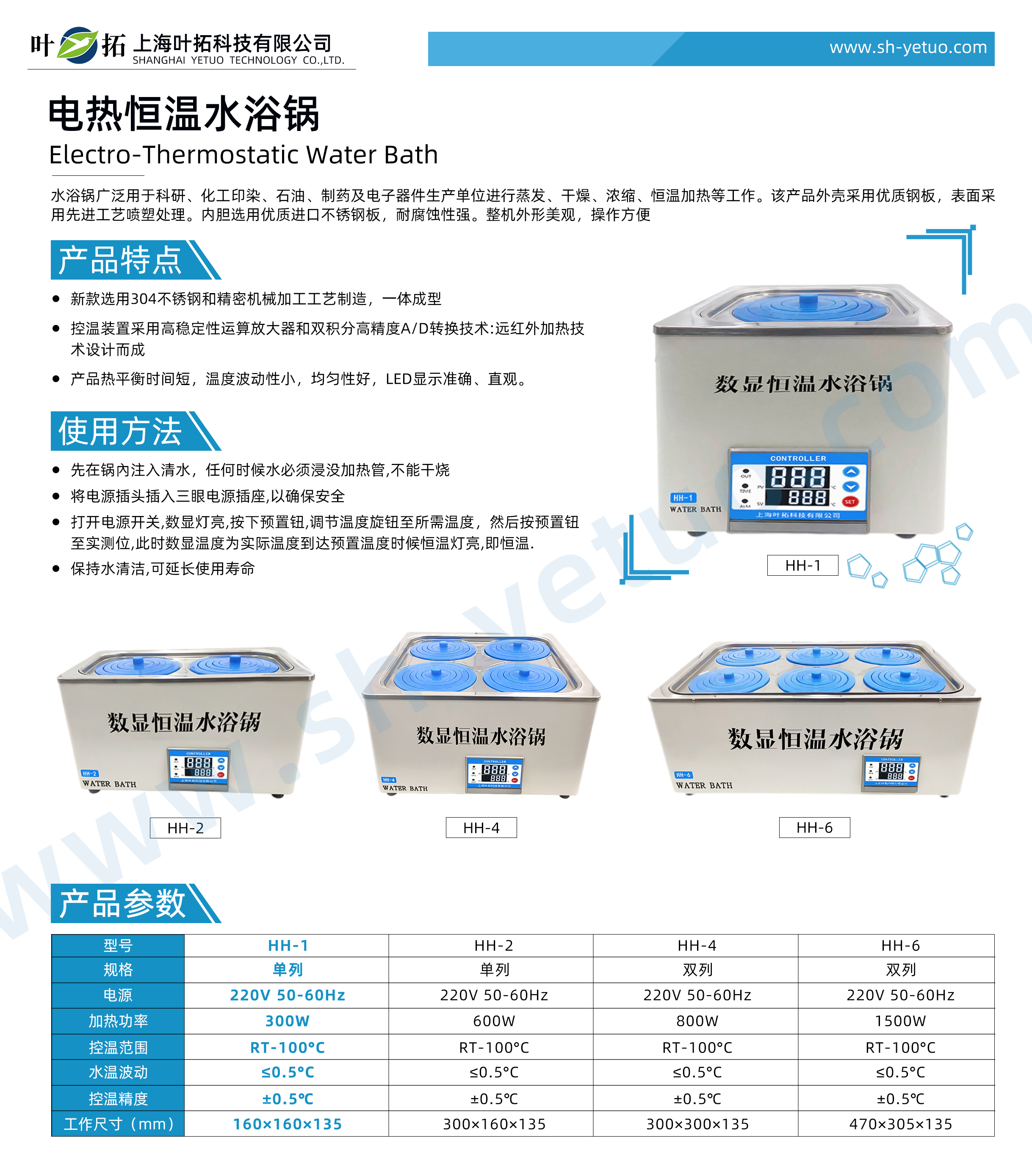 葉拓 HH-1 數(shù)顯恒溫水浴鍋(新款)詳細參數(shù)