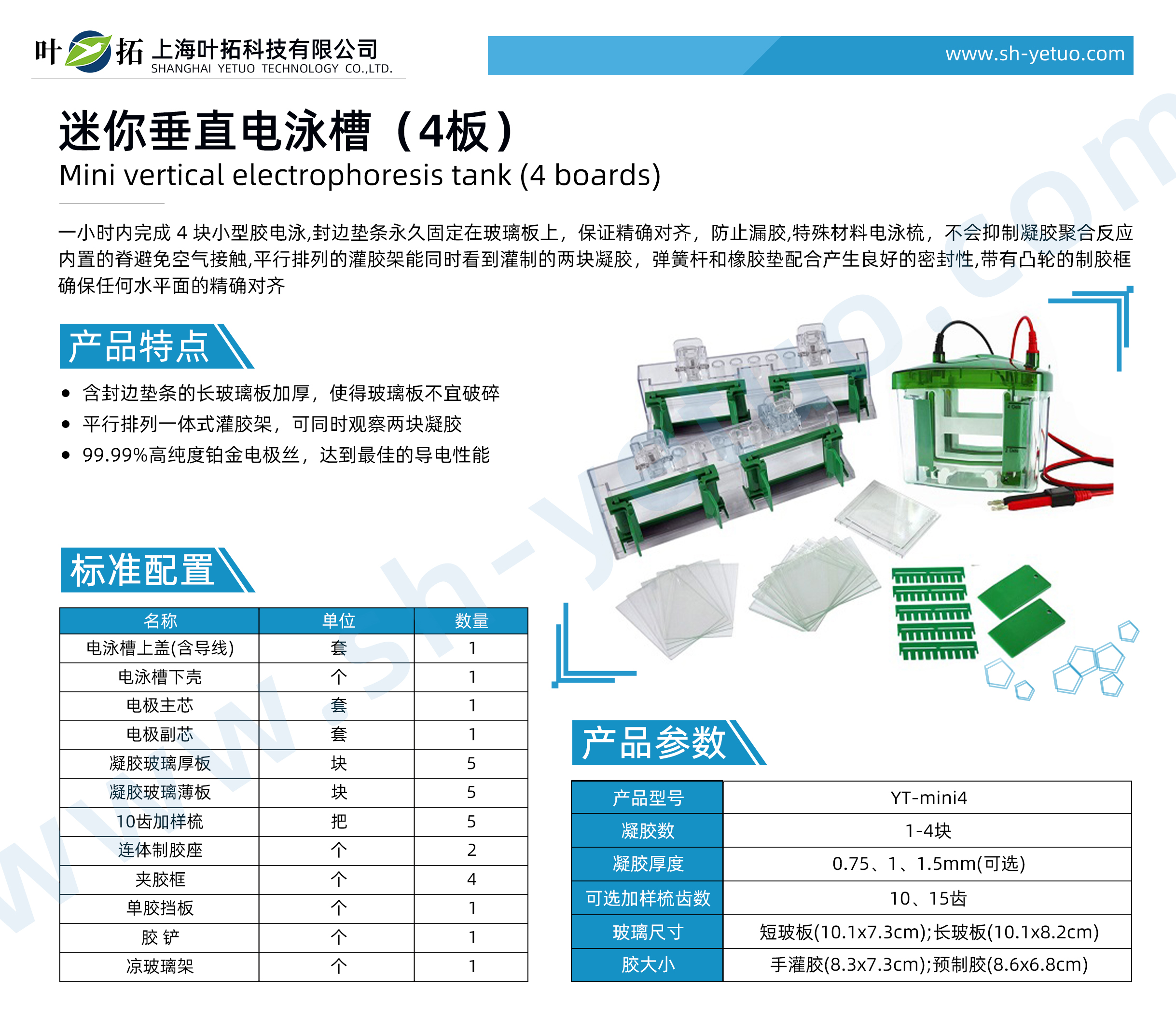 葉拓 YT-mini4 迷你垂直電泳槽詳細(xì)參數(shù)