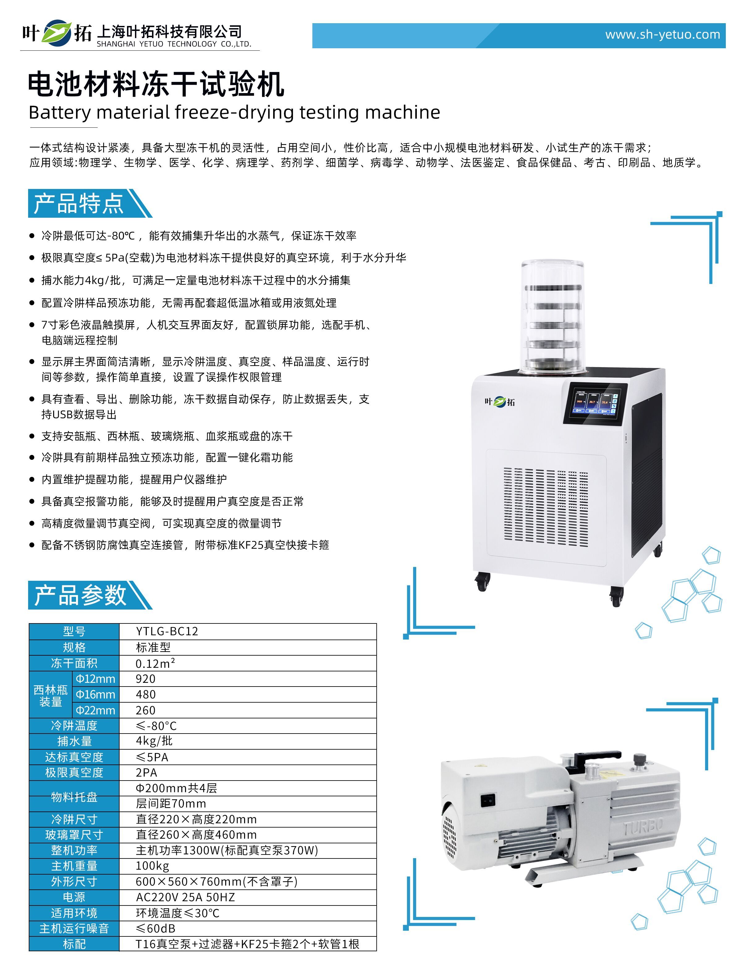 葉拓 YTLG-BC12 電池材料凍干試驗機彩頁