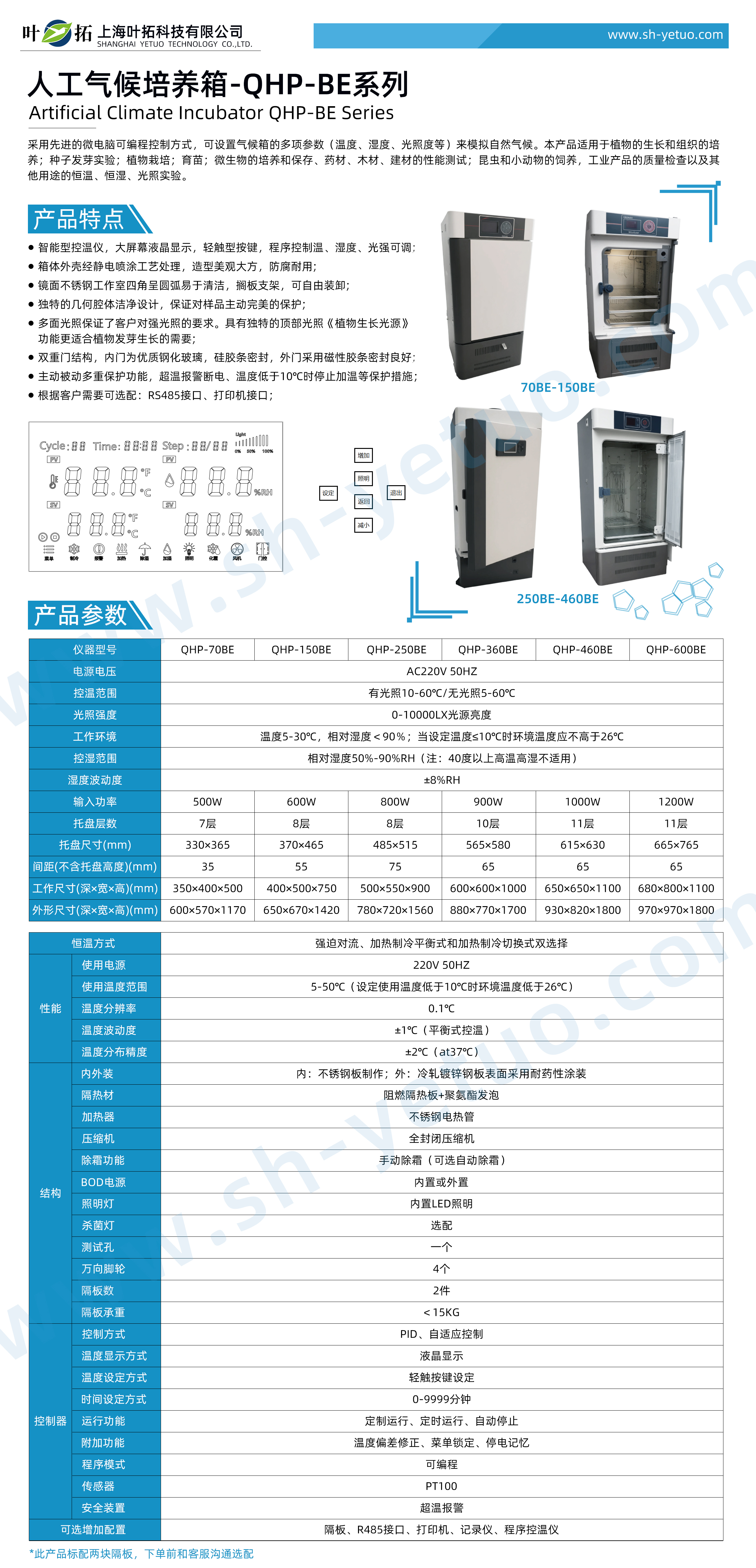 葉拓 QHP-600BE 人工氣候培養箱詳細參數